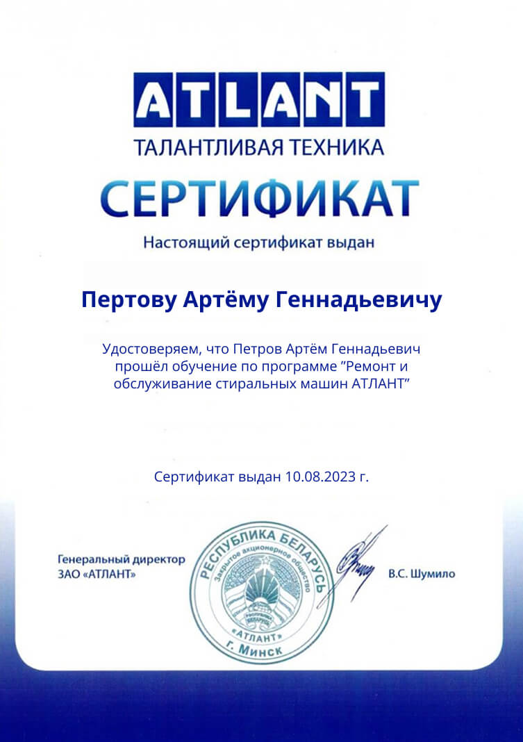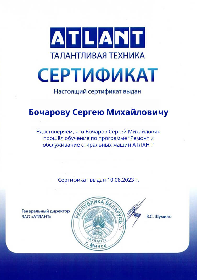 Каждый мастер в нашей компании имеет сертификаты, подтверждающие его квалификацию. Это не просто бумажки — это доказательство того, что специалист прошел обучение и знает, как работать с современными моделями стиральных машин. Сертификаты — это ваша уверенность в том, что ремонт будет выполнен правильно, а стиральная машина прослужит долго.